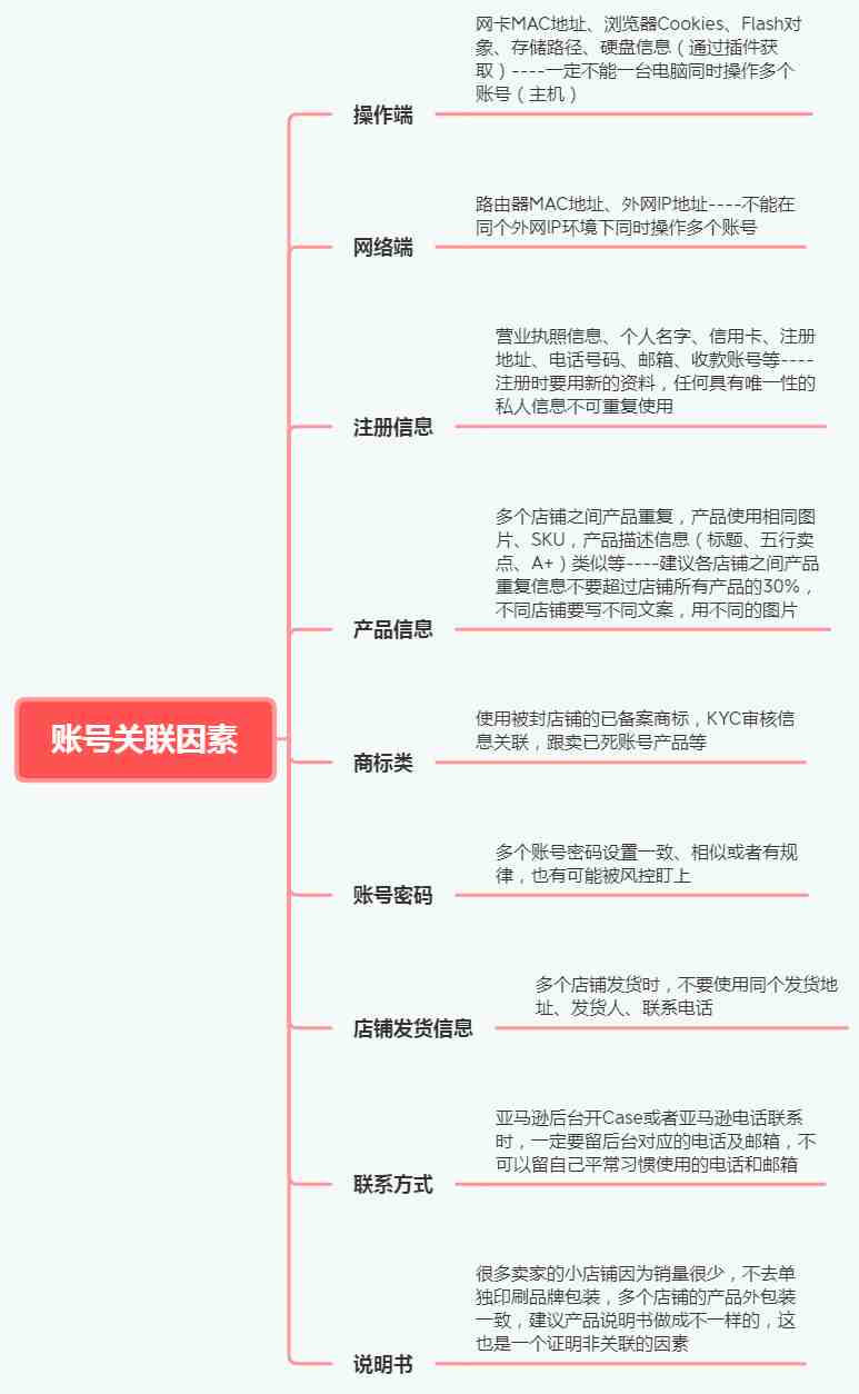 A:①同个人运营多个店铺的时候,操作习惯尽量更改下,让亚马逊以为多个账号是不同的人在不同的地方操作。