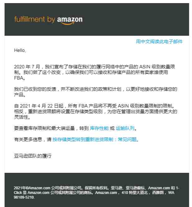 据小编了解这项政策的变更是为了确保亚马逊运营中心可以接收和储存所有使用亚马逊物流进行销售的卖家的商品。