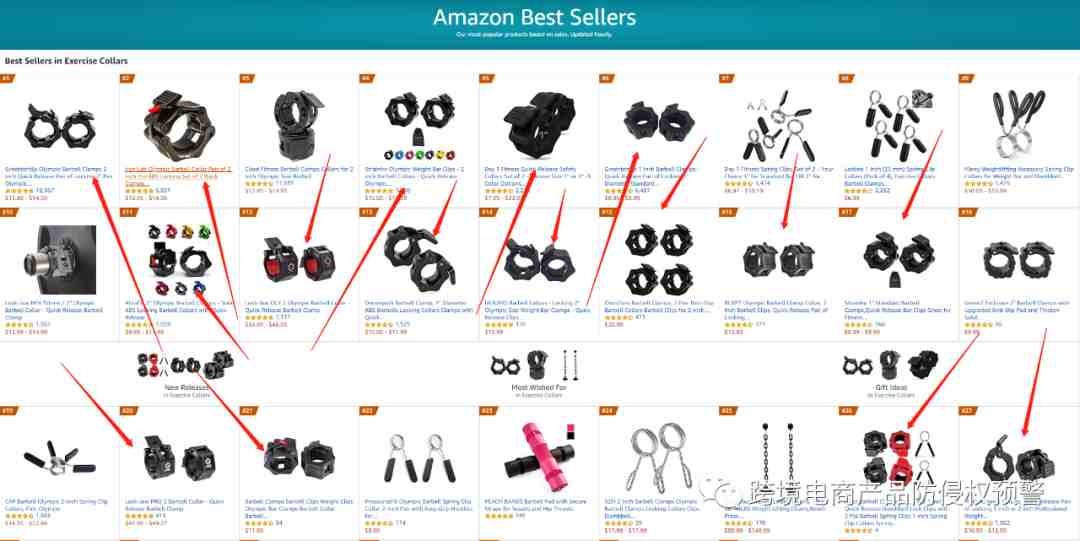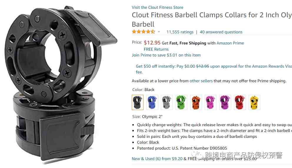 这款更火的杠铃项圈,在美国市场,它是存在在先相关的美国外观专利的: