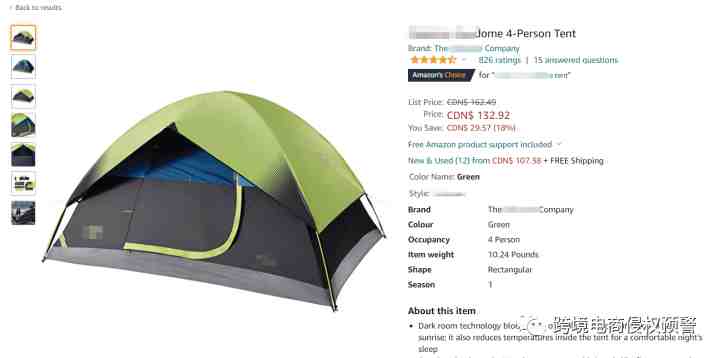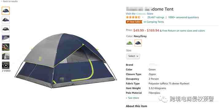应一位卖家朋友的要求做一期帐篷相关的北美外观专利防侵权检索分析案例,小编找到一款在北美站点爆款热卖的户外野营帐篷,分享如下。