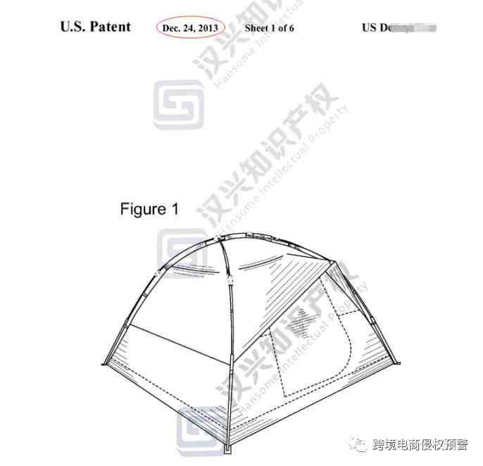 这款也应帐篷是比较常见的款式了,但是经北美专利背景定向检索,我们发现其在美国跟加拿大都是存在相关外观专利的,权利人为国内个人,早在13年就已授权。所以有在北美站点销售相关产品的卖家,应注意规避。下面就是这款野营帐篷在美国跟加拿大的外观专利截图: