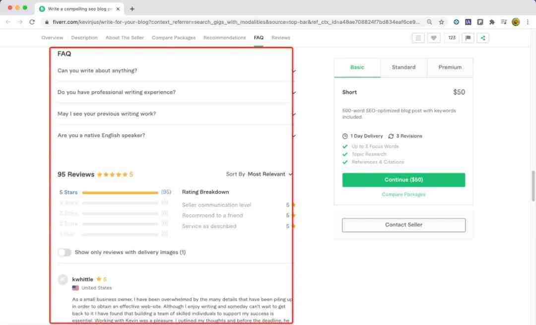 当然您可能有疑惑,如果对写好的文章不满意该怎么办?Fiverr 承诺如果有不满意的话可以向写手提出修改要求,同时您还可以通过帮助中心解决订单中的其他任何问题。
