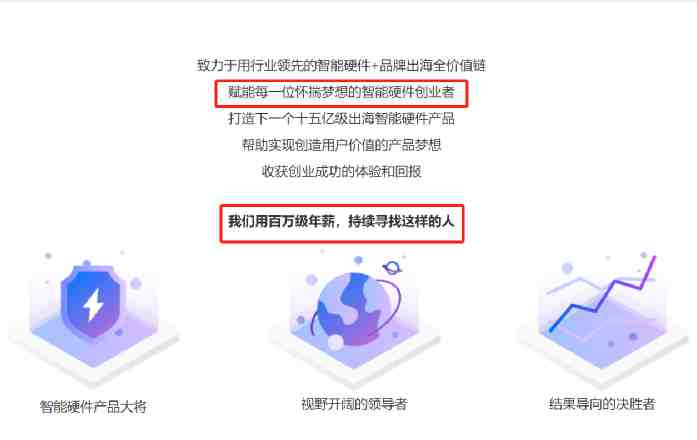因此,做成一个“以代运营为入口,向周边服务辐射”的一个“跨境电商服务链平台”,照样成就一门很赚钱的生意。这样一来,安克就摆脱了“个体户模式”了,转型到“平台模式”了。毕竟,做产品的天花板就在那边,你能做出Anker 、Soundcore 、eufy等15亿级、几十亿级的品牌,但你能复制出无数个的品牌吗?因此,做产品做得再好,依然是“个体户模式”。强如海尔,产品做得再好,也终归是天猫、京东、腾讯等平台下卖货的“个体户”,无法与这些平台并肩而坐。同样,安克虽有独立站,但很大程度上依托在亚马逊生态上谋食,虽然目前“ 两情相悦,关系融洽”,但毕竟人在他人屋檐之下,什么意外事情都有可能发生。总之,以代运营为口子搭建的生态服务平台,可以衔接大大小小的卖家和上下游资源,在每一个环节里,都有可能产生盈利模式,让安克从“个体户模式”逐渐过渡到更为安全的、更有想象空间的“平台模式”。 除了代运营,安克还推出了一个“创业者”集结计划以及“智能硬件创业者平台”。安克提出“打造最适合全球化智能硬件创业者平台”、“赋能每一位怀揣梦想的创业者”的愿景,一副“孵化”、“赋能”创业者的姿态。然而,安克话锋一转,又开出了百万级年薪,“持续寻找‘创业者’”。既然是一个赋能型的“平台”,为何还给创业者“发工资”?既然是创业者,为何还要从安克“领工资”?按照我们常规的理解,如果是一个创业赋能型平台,只要为创业者提供钱、人、资源,然后占点股权,帮助他们把事情做成便可。但是安克坚持要给这些创业者“发工资”, 这是为何呢?我们从安克官网的文本表达里,看到了一些“猫腻”。在“创业者”的文本表达上,安克巧妙地加了一个双引号。(如下图)这说明,这个创业者不是真创业者,是加引号的,有特殊含义的创业者。这也说明,安克心里是扭捏的,放不开的,甚至是矛盾的。安克想吸引厉害人才进来,给钱、给人、给资源,一起打造下一个像Soundcore 、eufy一样的,年营收超过了15亿的新品牌。然而,有能力的人才都是想创业的,都想自己的做的。安克无法放开,也无法放心。如果安克向这些人才输送了一切核心资源,帮他们成长,做大,结果失控了,成为了竞争对手,倒过来反噬安克怎么办?为此,安克想出了这一招,给创业者打上双引号,发百万年薪养着,但前提是,我要控股、控盘,你翻一个跟斗十万八千里,不要紧,随便你翻,但要在我的“手掌心”里翻滚,归我领导,不能翻到花果山当自己的山大王。当然,在这种机制下,创业者一般是持有一定股权的,至于具体多少股权,属于安克内部的事。排在第一的“创业者”,是前360手机总裁、酷派互联网及电商总裁Frank。加入安克之后,担任安克子公司智新总裁。一位熟悉跨境电商大卖家企业的朋友告诉亿观先生,“创业集结计划”差不多是伪命题,实际上都是为了招高级人马,像泽宝、傲基也基本是这样干的,给的待遇是底薪+奖金包,有可能有股权,具体要看公司政策。因此,安克这样“创业者平台”,跟小米生态链平台或者“孵化平台”无法相比的。咱们比的不是体量,也不是影响力,而是它们的本质区别。首先,小米扶持的生态链企业,一般不控股,不管理,也不是子公司。对于生态链企业,小米采用的“放牛态度”,持有一定股权,给予流量、供应链的扶持,让其自由生长,但前提是,要有“相同的价值观”,有“一致的利益”。对于不控股,不管理这点,亿观先生完全相信小米是真心的。这不是因为小米生来是“伟大到乐于成就他人”,最关键的是它有强大的护城河——小米手机。小米的生态布局,是以其手机为核心,辐射到手机周边(移动电源、耳机、自拍棒),到智能硬件(智能化手环、扫地机器人)、再到更外围的生活耗材。