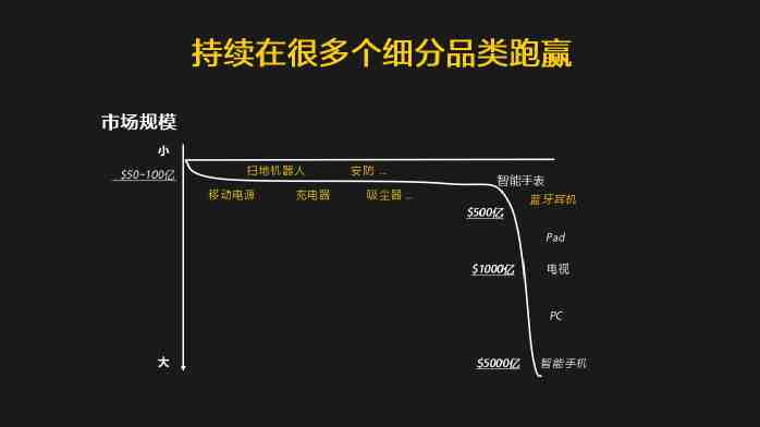 毕竟,安克的市值是有“强硬骨架”支撑的,包括深厚的研发能力、亚马逊上的稳定排名和品牌声誉。安克所在的消费电子行业的“脆弱性”,及其商业模式的“单一性”,注定了这一危机。正如阳萌所说,消费电子,是一个“速生速死”的品类。比如,我们熟知的MP3、磁带随身听 ,曾经红极一时,风靡全球,相关的企业也赚到很多钱。然而,它们很快被新一代产品取代,接着就永远消失了。消费电子之间,互相残杀,一代吃掉一代,不留任何空间。磁带随身听被MP3取代,MP3被iPod取代,而iPod,也被苹果自己的iPhone“挤压,停产多个型号,其他型号也迭代缓慢,也将面临逐渐淡出市场的结局。无线网卡、傻瓜数码相机、功能手机等,都没有摆脱“速生速死”的命运,好比夏天的虫子, 一生短暂。安克主打的数据线、移动电源、蓝牙音箱、智能投影仪、行车记录仪等产品,都是功能、代际更迭很快的产品,谁也不知道,什么时候会被新的产品形态替代。 比如,安克一直引以为豪的充电线和充电器,可能被无线充电设备所取代,或者被一些内置充电功能设备取代,如同现在的电动汽车采用“内置充电功能”一样。当然,随着市场的变化,安克的产品也会不断迭代,不断适应时代趋势,甚至经常会开“产品自杀会”,提前布局新产品,主动“杀掉”现有的产品。然而,安克在不断创新的过程中,成果迅速被同行复制。比如在2018年11月,安克推出首款采用氮化镓技术的充电插头,受到了市场热捧。很快,竞争对手、同样是深圳大卖家的傲基(Aukey)在不到一个月的时间里,迅速推出类似产品。接着,一大帮大大小小的卖家跟风而上,一时间市场变得非常拥挤。在这种情况下,安克是以“有限的创新能力”,应对“无限的市场变化”以及“无穷复制的同行”。阳萌自己也说过类似的话,做消费电子,好比在活火山上盖房子。你做设计,选建材,砌墙体,好不容易盖起一栋大楼,岩浆可能突然冒上来,房子和地基瞬间被淹没了,一切归零了。比如,像SHEIN(希音)那样搞女装、宠物用品,不是照样风生水起么?没错,像服装、化妆品、桌椅、床垫等品类虽然也会有迭代、变化,但总体是“稳定的,安全”的,不至于不会像MP3等消费电子一样,突然会被新冒出来的产品彻彻底底“杀死”。这些产品一旦做出了品牌,后面崛起的新品牌,要很快吃掉老品牌是很难的,最多是吃饭的大锅旁,增加几人和几双筷子,而不是整口锅被别人端走。在小米横扫天下之前,他在深圳开工厂做山寨手机、充电器宝,生意不错,花钱也大方,仅仅一个几秒的手机屏幕动画,他大笔一挥就付给动画师120万。然而,几年后小米崛起,寸草不生,他的手机、充电宝产品的市场份额迅速缩水,最终不得不关掉工厂。这位朋友说:“消费电子做得太累了,研发、生产都很麻烦,卖出去后,售后还要擦一堆屁股,算下来利润也不太高。酒呢,简单,喝下去去后,变成尿拉掉完事。”此言虽有偏颇,但也是话糙理不糙。做简单的产品,好处真的很多。实际上,2020年上市公司中,最赚钱的公司不是做“高科技的复杂产品”的公司,而是做“低科技的简单产品”的公司。比如,金龙鱼2020年一上市,市值6730亿,农夫山泉一上市,创始人钟睒睒当了首富,海天酱油上市后,巅峰期市值飙涨至6500亿。油、水、酱油,这些商品的特点是用户覆盖面广、复购率高,产品没什么售后,一旦做成品牌,可以坐收庞大利润,而不是像消费电子公司一样,售后服务一大堆,还要时刻提防被人“杀死”。要命的是,一年到头要死命地盯着市场新趋势,坚持不懈地搞创新,做新产品,否则一段时间内就落后了。茅台放一年假的,照样稳坐钓鱼台,价格还会往上涨,而消费电子公司放假一年,没有出新产品,公司很可能就“死掉了”。安克选择了“累人的高科技的复杂产品”,而同属百亿大卖家阵列的SHEIN(希音),则选择了“简单的低科技产品”,如服装、化妆品、宠物用品等,活得照样非常滋润。因为简单产品,如服装、桌椅、床垫等,要做出品牌的难度,比消费电子更高。一是市场已经成熟,老品牌林立,竞争激烈,二是产品相对定型,功能固化,迭代缓慢,无法借助新品类和新形态的“势”,迅速打造出一个新品牌。相比之下,消费电子高频迭代,经常会出现全新的产品形态、品类,有时一个爆款产品出来,很快造就了一个或若干个新品牌。 运动相机 、扫地机器人、智能音箱等新品类,从无到有,从0到1,无不诞生了新兴的品牌。毫无疑问,在新品类上做出一个品牌,比红海市场里“打杀”出一个品牌会容易很多。安克就“占到了这个便宜”,尝到了新品类驱动新品牌的甜头。安克从移动电源着手,再以新产品、新技术作为驱动,扩充到无线耳机、扫地机器人、智能家居等,迅速做出了Soundcore 、eufy、 Roav等新品牌。其中,Soundcore 、eufy两个新品牌,年营收超过了15亿。毫无疑问,消费电子的新品类,为安克系列品牌的迅速崛起提供了机会。然而,消费电子留给安克的“阵地”不多了,尤其是“能给它占据头部位置“的品类不多了。安克能做的品类,几乎都做了遍,从移动电源、无线耳机,扫地机器人,再到车载硬件,很多已经“登顶”,做到了亚马逊第一、第二的位置了。因为,安克是挑剔的,也是取巧的,只做“浅海产品”,不做“深海产品”。如果将市场比作海洋,市场规模小的产品,在“浅海领域”,市场规模大的产品,在“深海领域”。销售规模在50亿、100