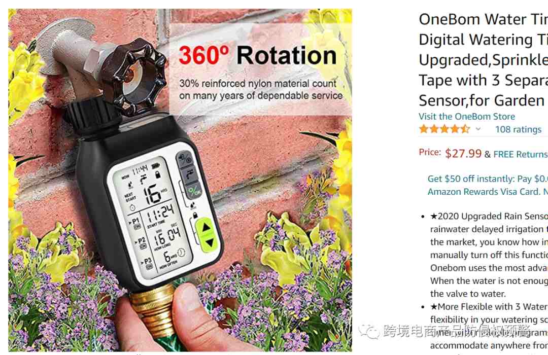 下面这款灌溉定时器,去年上架以来,销量都蛮不错的,而且属于园林类所需的季节性旺季需求产品,相信在即将到来的销售旺季,会有不错的销售业绩: