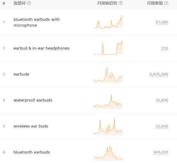 特定人群搜索的词,比较小众化。比如headphones for ol这种小众词wireless noise这种搜的人比较小众。