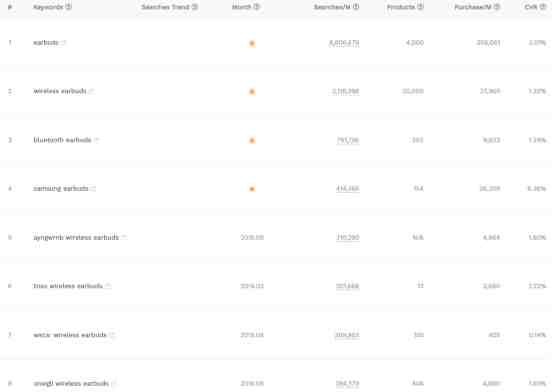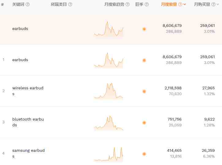 核心词是指产品搜索量最大的词,但是需要和产品相关的。比如蓝牙耳机搜索量最大的是earbuds。