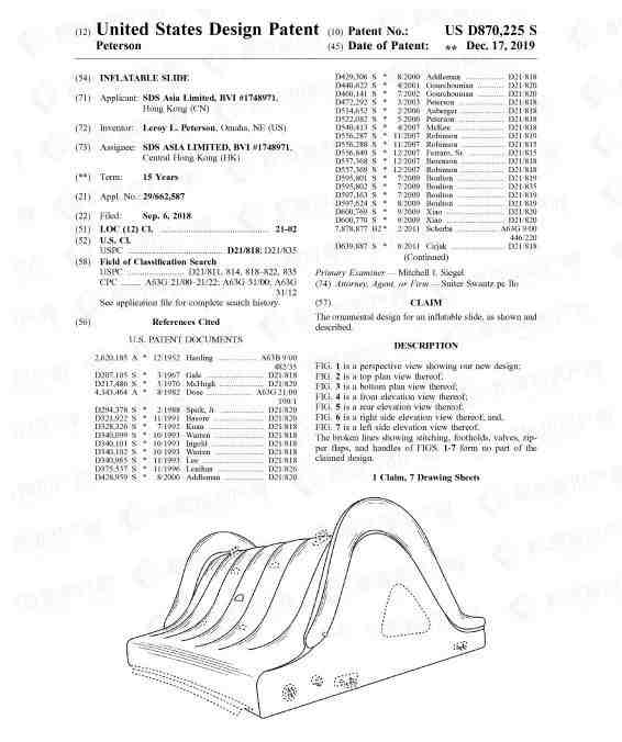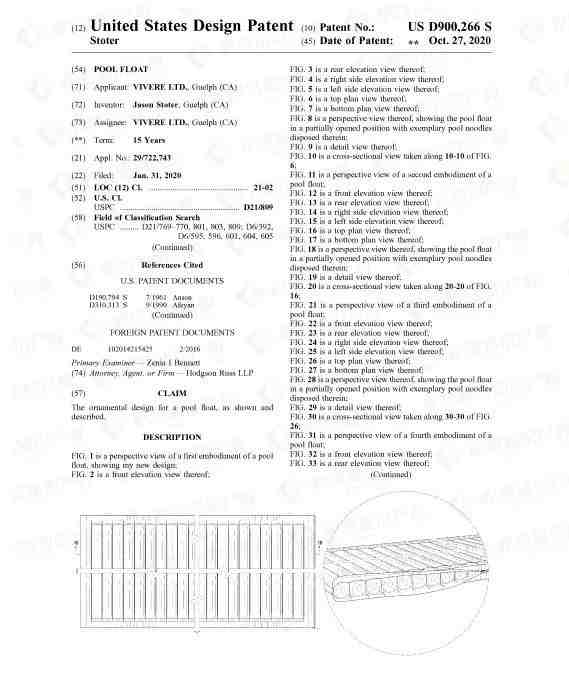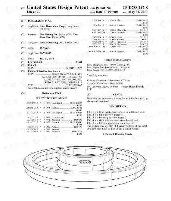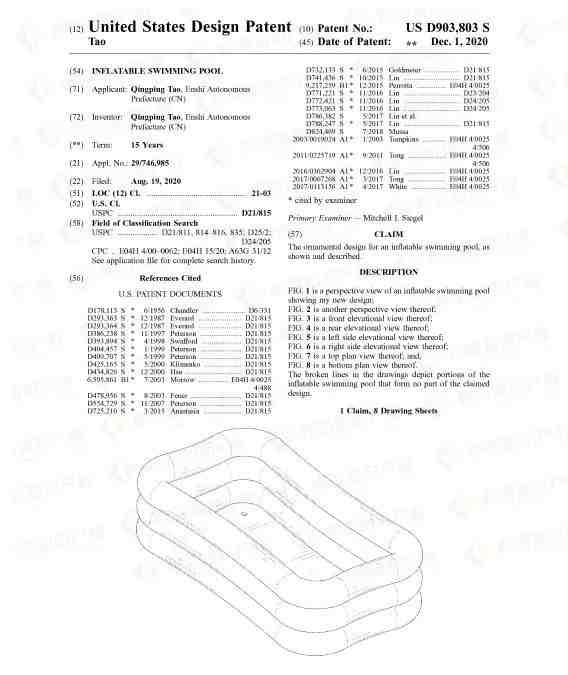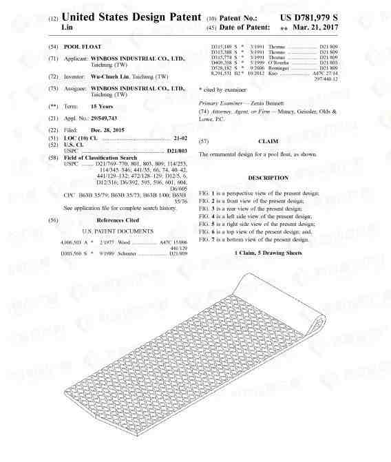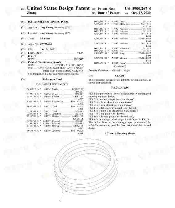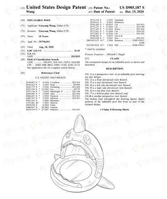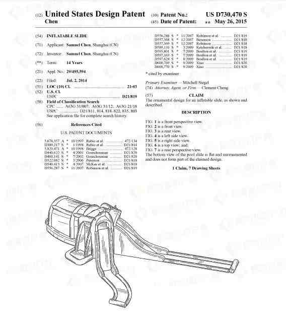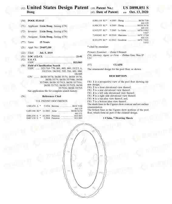 水上充气垫外观各异,且不少都已申请专利,卖家要注意规避!检索到的部分外观专利: