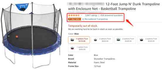 据eBay数据显示,蹦床是2020年销售增长最快的户外玩具。2021年势头仍旧不减,亚马逊上有不少产品都在热销。