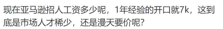 近日,有卖家在某论坛发出直击灵魂的一问:亚马逊招人,1年经验开口就是7K,这到底是市场人才稀少还是漫天要价呢?
