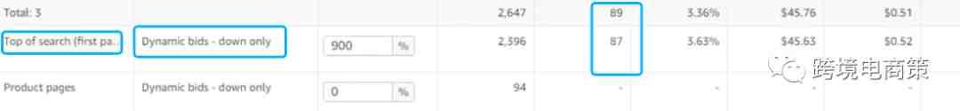 我们在看看上面的 自动广告,这个广告我们选位置的时候我们选top of search 这个位置我们提高竞价,主要的精力放在这个位置,我们发现 这个广告活动跑出来的两个词也是我们在 词组广告中投放的两个词,完全一摸一样的两个词