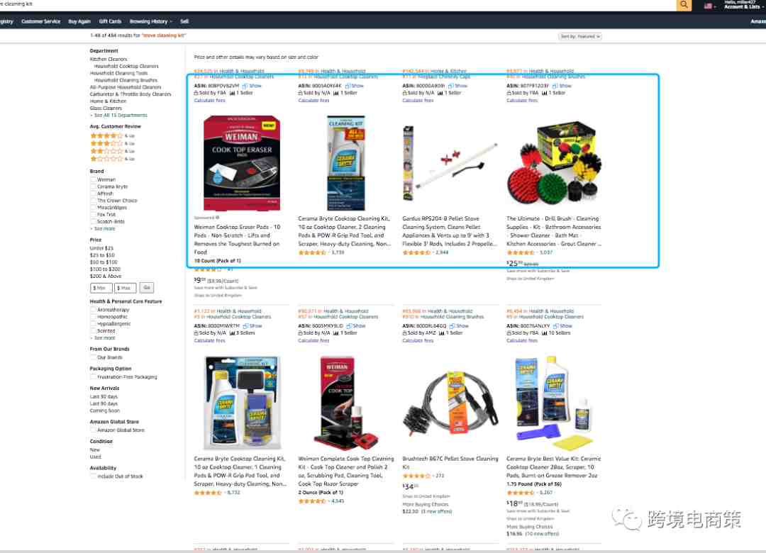 这个广告活动只有其中的一个是 手动广告 词组匹配,并且只有两个词,假如说我们的词是stove cleaning spray和 stove cleaning kit