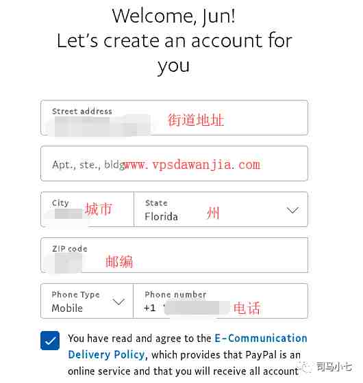 美国IP地址,最好固定IP地址,这样可以有效地避免触发PayPal的风控。我的解决方案是在VPS上安装VNC和Firefox浏览器,所有的操作直接在VPS上进行。如果你对Linux系统不熟悉,建议找可以安装Windows操作系统的VPS服务器,通过远程桌面连接上去操作。如果你使用Google Fi,那就更简单了,直接在手机上操作即可,也可以开热点给笔记本电脑使用,在电脑上注册美国PayPal.