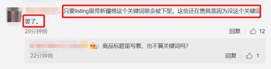 有卖家猜测,这封邮件发生在今年一月份,并表示当时就已经有大批卖家中招,这些产品被移除的原因大多数是在标题、描述中写了新疆棉花。