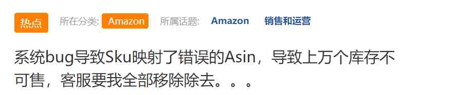 近日,有位卖家在向亚马逊客服咨询问题过程中,就因为客服的一个错误操作导致自己上万库存不可售。