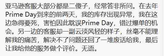 其实对于亚马逊客服的业务水平,卖家们早有怨言,小编在卖方通卖家交流群里,就常常见到卖家对亚马逊客服的吐槽: