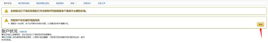点击查看账户状况,就能看到申诉按钮,如下图所示: