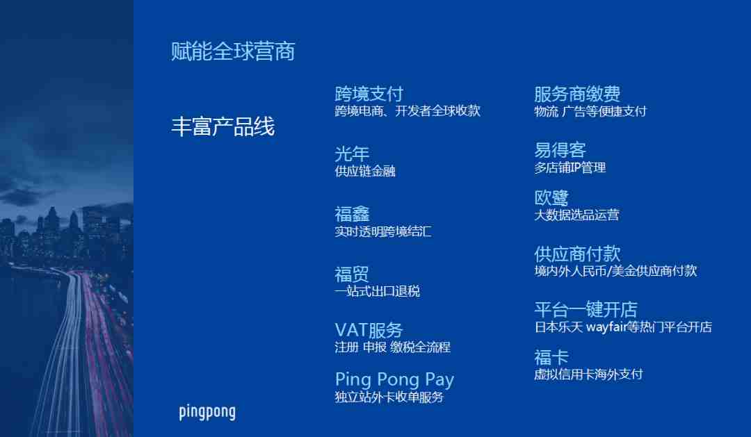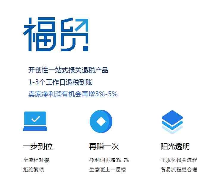 PingPong还推出“福贸”这款产品,它是开创性一站式报关退税产品,1-3个工作日退税即可到账。
