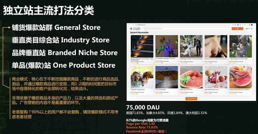 Shopline业务经理He Ping分享了他对独立站的理解,未来,独立站会越来越像一种全新的电商操作系统,而且域名、店铺、用户数据将是属于卖家自己的资产。He Ping还分享了独立站的主流打法,现在的独立站主流打法分为铺货爆款站群、垂直类目综合站、品牌垂直站和单品站,不同的打法都有其独特的精髓玩法,更多的内容也可以点击原文详细了解。