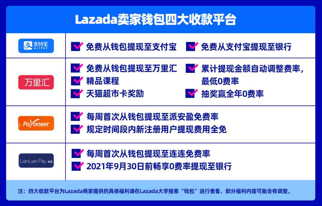 为了提升商家在 Lazada 平台收款管理的便捷性和安全性,在新加坡金管局新出台的“支付服务服法案”要求下,Lazada与国际支付宝合作推出升级版财务结算方式“Lazada Seller Wallet卖家钱包”功能,并将在4月1号正式上线!所有Lazada跨境商家在钱包上线后,需尽快完成钱包激活绑定动作,避免因超期而影响店铺后续经营。(具体截止日期请留意平台通知)