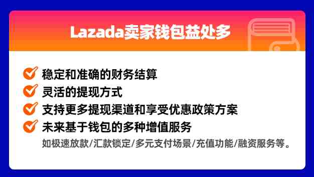 Lazada安全支付再度加码,平台即将上线升级版财务结算方式——Lazada Seller Wallet卖家钱包,商家激活钱包后即可一键实现稳定打款、灵活提现、提现优惠以及多种增值服务!