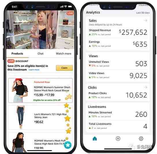 亚马逊推动实时流传输有两个组成部分-第一个是亚马逊直播,这是Amazon自己制作的视频的名称。亚马逊确实出售了针对亚马逊直播细分市场的赞助商,尽管没有透露品牌赞助细分市场可能要支付多少费用,但是在去年的黑五网一期间,亚马逊直播的坑位费高达15w美金。还有就是亚马逊直播 Creator App,可让品牌免费创建自己的直播,但对于直播,亚马逊对商家的管控和直播间监管甚为严格,一不小心就会违背Community Policy而被禁掉直播间,这里有许多运营技巧我们下回给大家讲解。