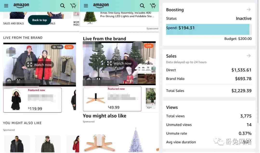 Amazon Live 频道对于直播间的推广目前只有一种形式:直播广告