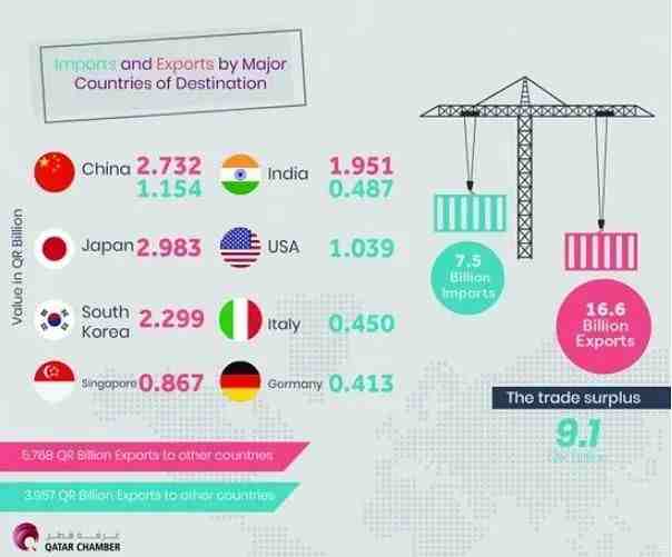 中国是卡塔尔外贸的目的地国家中排名第一的国家,约有 11 亿美元,占 2020 年 11 月卡塔尔外贸总额的 16.2%。