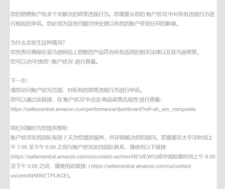 申诉不成功,想着先放着不管,等有时间的时候再想办法继续拯救。但是亚马逊可不这么想,于是我收到了如下一封邮件。大概意思就是如果你不处理这些违规listing,那么店铺就可能会被限制销售。