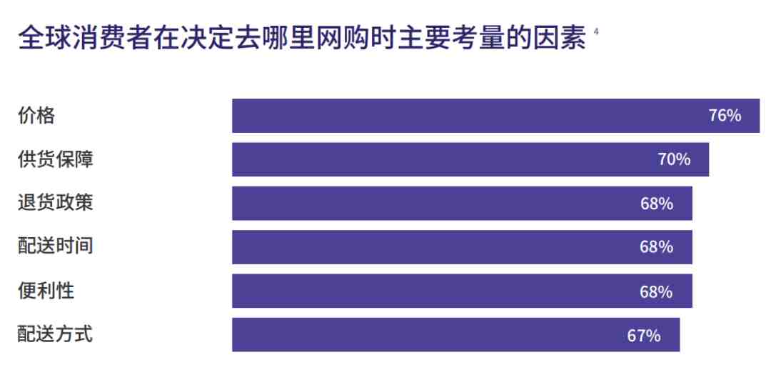 68%的网购者在网购时都会考虑到退换政策和配送时间,对于刚接受网购的消费者,商家需要经历一段时间才能赢得他们的信赖。建议向买家宣传高效的配送服务以及快捷流畅的退货政策,以此来减少新手在网购时遇到的障碍。