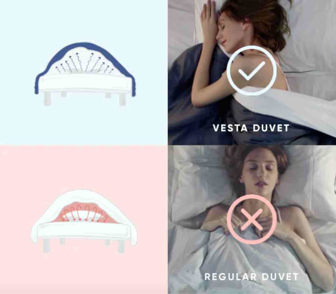 大部分的被子,所填充的材料,都不好。而“Vesta Duvet”,填充的是高质量的丝绸,能做到稳定温度,保持睡眠时身体干燥,柔软舒适。
