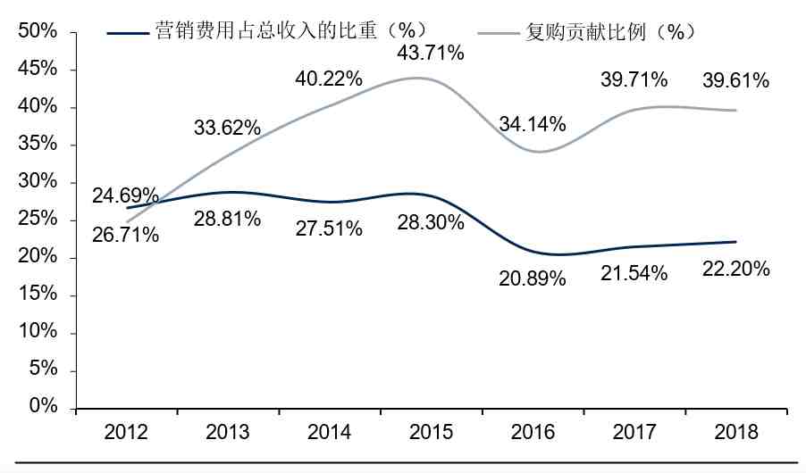 (某自营B2C网站营销费用及复购贡献占比情况;资料来源:公司公告、国信证券经济研究所整理)