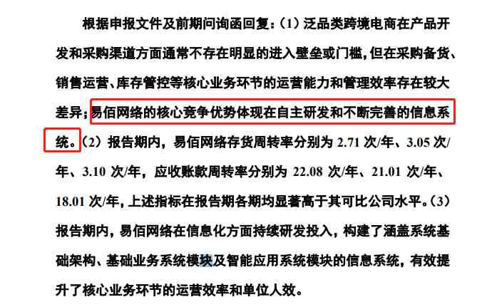 易佰网络认为自己的核心优势是自主研发和不断完善的信息系统。