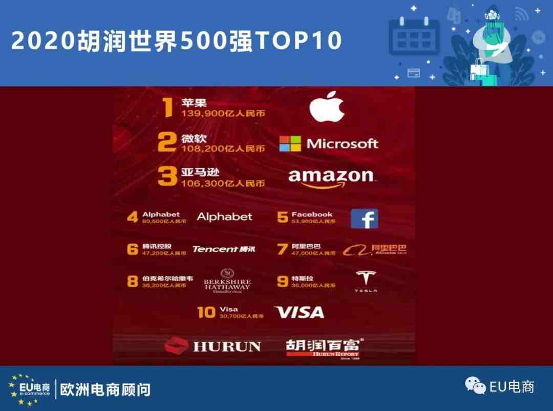 2020胡润世界500强榜发布:苹果、微软、亚马逊排名前三
