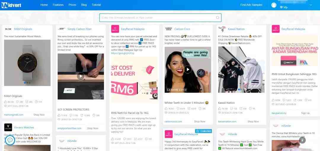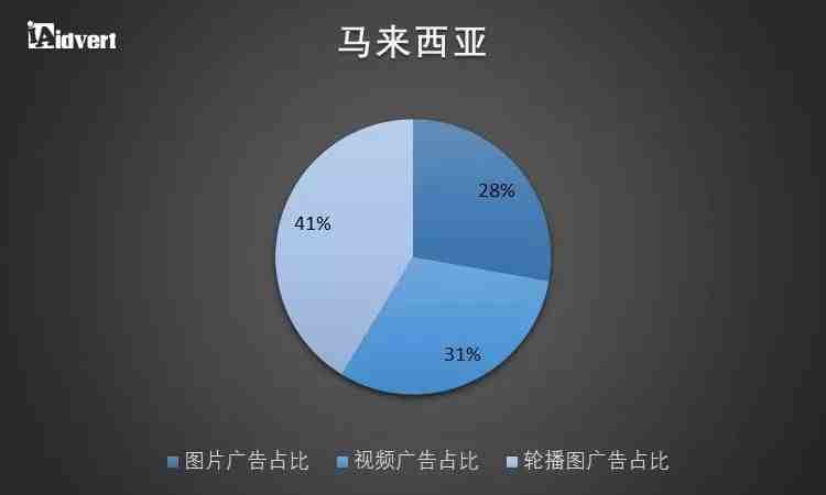 马来西亚的社交媒体用户占到了总人口的75%,也是比较可观,Idvert给出的Facebook广告数据显示,三种主流广告形式在马来西亚都比较均衡,当然,轮播图还是占比居多。