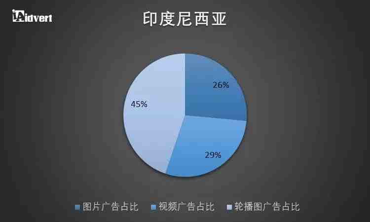 轮播图广告依然在印度尼西亚占主导地位,视频和图片相差无几。