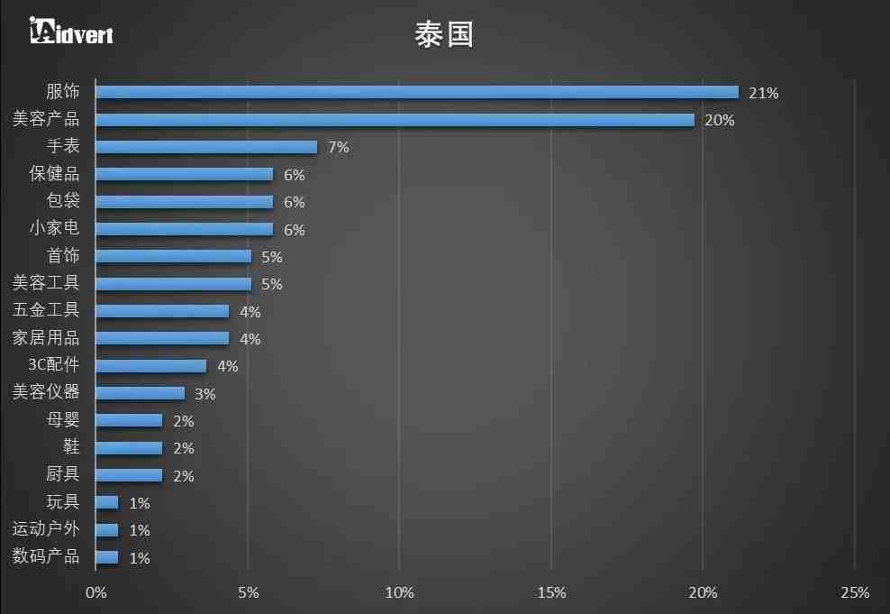 除了服装、美容产品占比较多外,其他诸如手表、保健品、包袋等商品的比重都相差无几。所以在泰国除了卖服饰和美容产品,其他商品可以多元试水。
