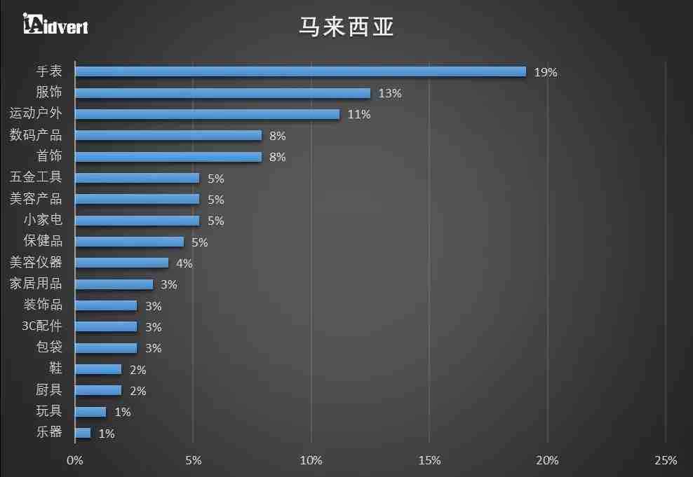 从Idvert收录的热度广告来看,手表、服装、运动户外等产品都是比较受马来人欢迎的。