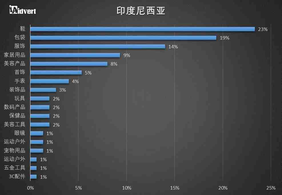 我们通过Idvert后台广告数据,整理出了该地区目前畅销的产品,手表、鞋、包袋、美容产品、家居用品、服饰都是不错的选品方向。